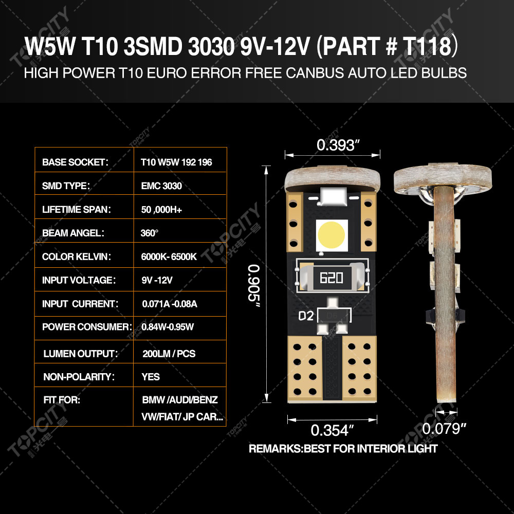 型號 t10-3smd 3030