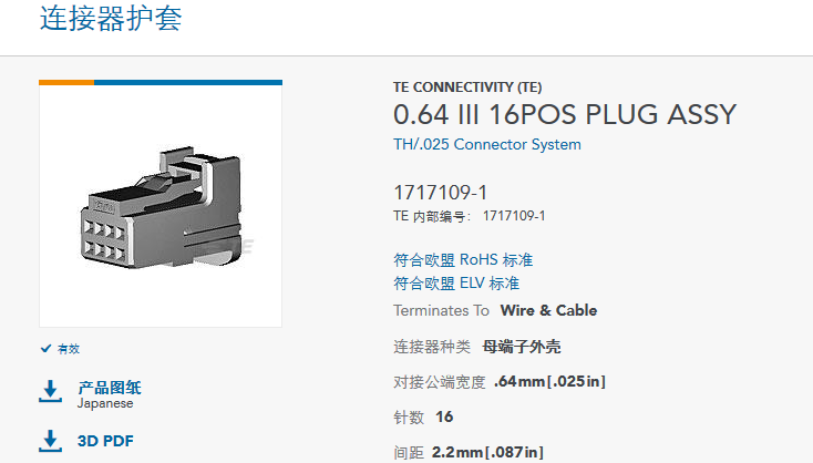 連接器護套泰科料號1717109-1母端子外殼信號連接器簡介