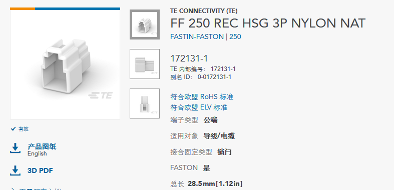 端子接頭快速斷開泰科料號172131-1公端連接器簡介