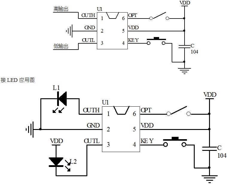 opt:檢測到高電平輸入時,outh輸出高電平、outl輸出低電平,opt一直檢測到高,outh一直保持高電平輸出;outl一直保持低電平輸出,直到opt高信號消失。