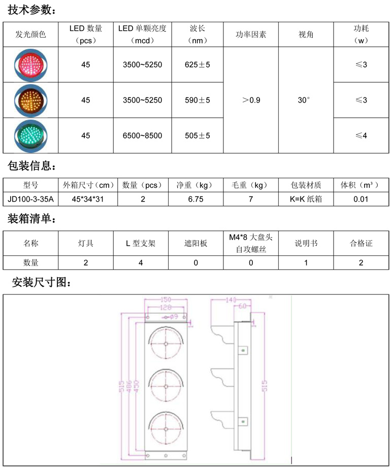 6、100mm紅黃綠滿盤交通燈是采用進口led芯片,發光亮度高、使用壽命長,采用恒流恒壓供電方式,性能穩定;箱體外殼使用五金箱體。