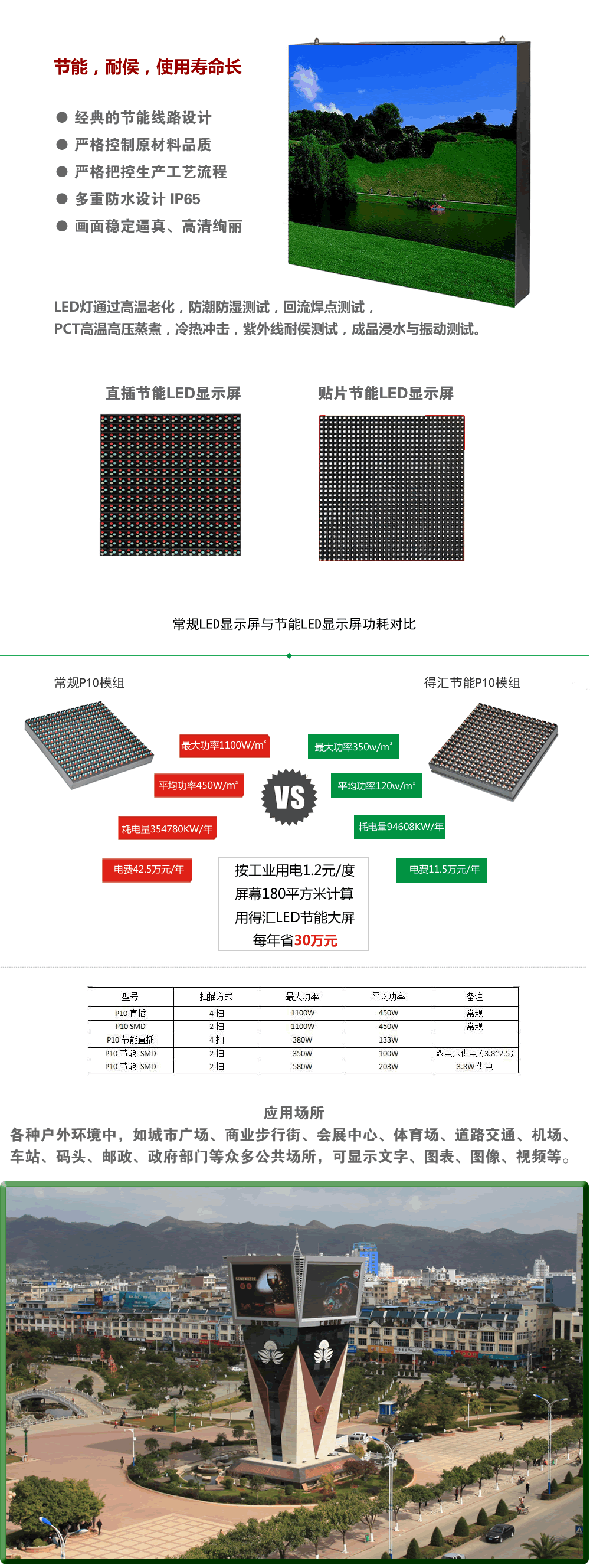 得匯節(jié)能全彩led顯示屏采用最新的設(shè)計(jì)理念,兼顧成本等各方面因素 ,從led顯示屏發(fā)光二極管、控制系統(tǒng)、模組、電源、套件多方面進(jìn)行了led顯示屏低功耗的優(yōu)化設(shè)計(jì),為客戶(hù)提供優(yōu)良的led顯示屏節(jié)能產(chǎn)品,節(jié)能全彩led顯示屏與常規(guī)顯示屏相比,不僅減少在空調(diào)、電纜等方面的投入,還可明顯節(jié)電,而且保證了節(jié)能全彩led顯示屏的穩(wěn)定性、一致性、還原性等優(yōu)良品質(zhì),深受廣大用戶(hù)喜愛(ài)。