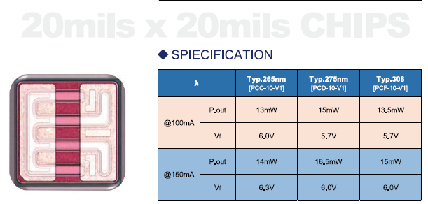 uvb uvc殺菌芯片20*20mil-pw進口