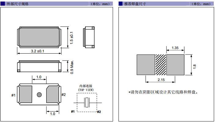 晶體產(chǎn)品可能會(huì)在某些條件下受到損壞。例如從桌上跌落或在貼裝過程中受到?jīng)_擊。如果產(chǎn)品已受過沖擊請勿使用。