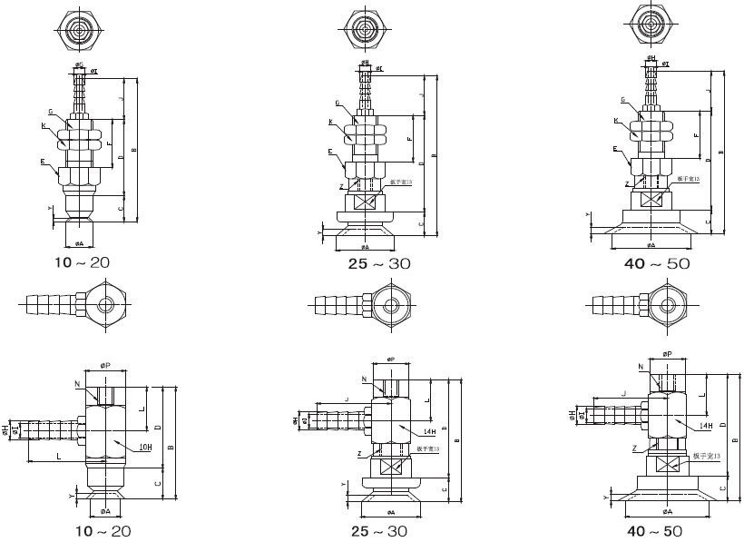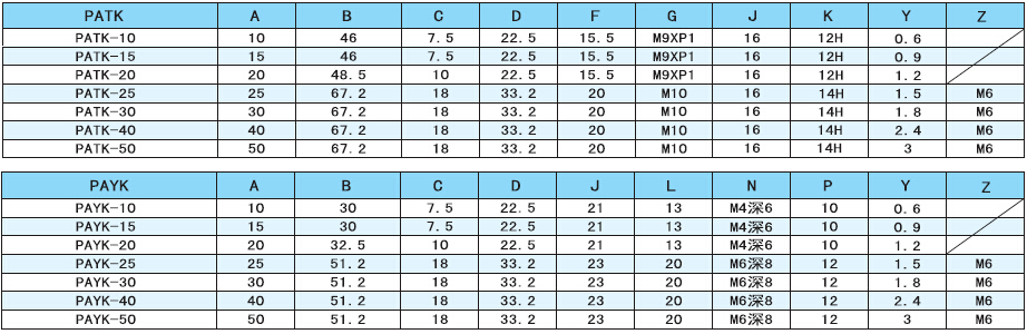 patk/payk系列帶金屬支架薄型吸盤規格尺寸圖表: