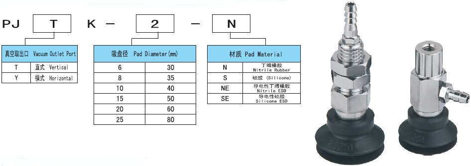 pjtk/pjyk帶金屬支架雙層吸盤規格圖表: