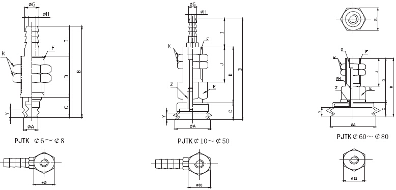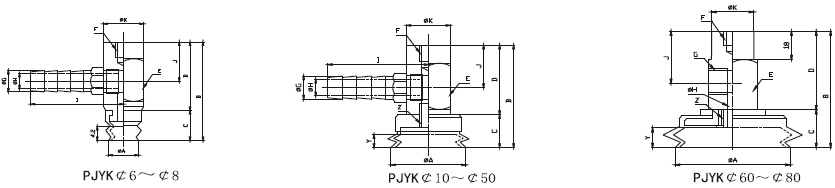 pjtk/pjyk帶金屬支架雙層吸盤外形尺寸圖: