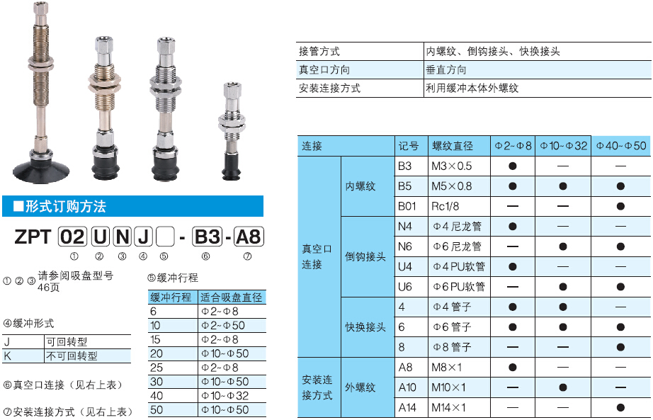 zpt立向接管帶緩沖真空吸盤訂購圖:
