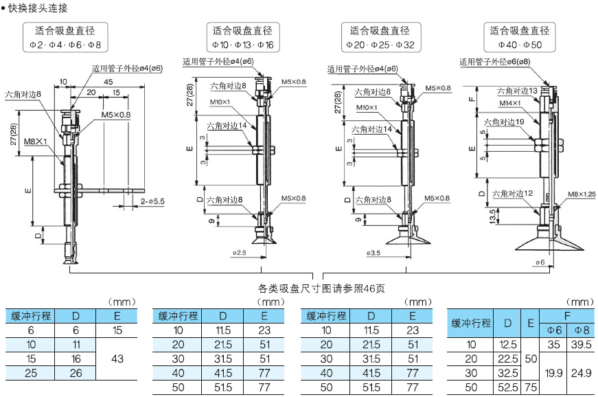 zpt立向接管帶緩沖真空吸盤外形尺寸圖: