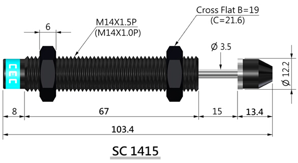 sc1415自動補償型油壓緩沖器尺寸圖: