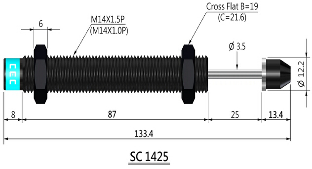 sc1425自動補償型油壓緩沖器尺寸圖: