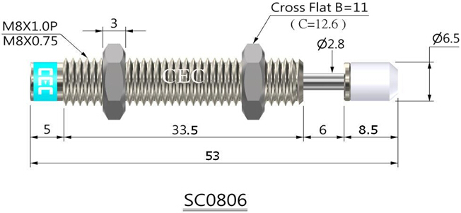 sc0806自動補償型油壓緩沖器尺寸圖:
