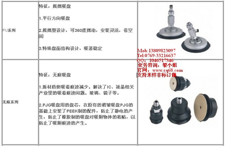 真空吸盤各系列簡介: