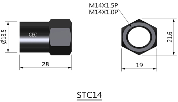 說 明:牙規 m 14 * pitch 1.5 (1.0),緩沖行程 15 mm。產品以pe袋封口包裝,再裝入內盒,附兩個螺帽;定位螺帽為選購配件。表面處理為染黑。