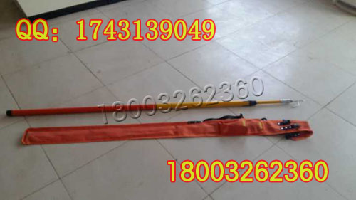 異物桿是用來清除掛在供電線路上的異物(如樹枝 塑料袋 風箏等)的專用工具,其功能可以挑、鉤、鋸、打。該工具用環氧樹脂玻璃纖維管材料為桿身,絕緣性能好。重量輕,可以伸縮,攜帶方便,桿頭部刀據和鉤尖用不銹鋼材料制作,不但防銹,而且鋒利。更換方便。伸縮機構是定位銷鎖緊,伸長時拉出,當拉到看見刻線時停住,而后左右轉動,轉到一定角度,定位銷會自動彈出,從而定位鎖緊,當收縮時用手指按下定位銷同時往里推內管即可縮短。