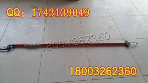 異物桿是用來清除掛在供電線路上的異物(如樹枝 塑料袋 風箏等)的專用工具,其功能可以挑、鉤、鋸、打。該工具用環氧樹脂玻璃纖維管材料為桿身,絕緣性能好。重量輕,可以伸縮,攜帶方便,桿頭部刀據和鉤尖用不銹鋼材料制作,不但防銹,而且鋒利。更換方便。伸縮機構是定位銷鎖緊,伸長時拉出,當拉到看見刻線時停住,而后左右轉動,轉到一定角度,定位銷會自動彈出,從而定位鎖緊,當收縮時用手指按下定位銷同時往里推內管即可縮短。