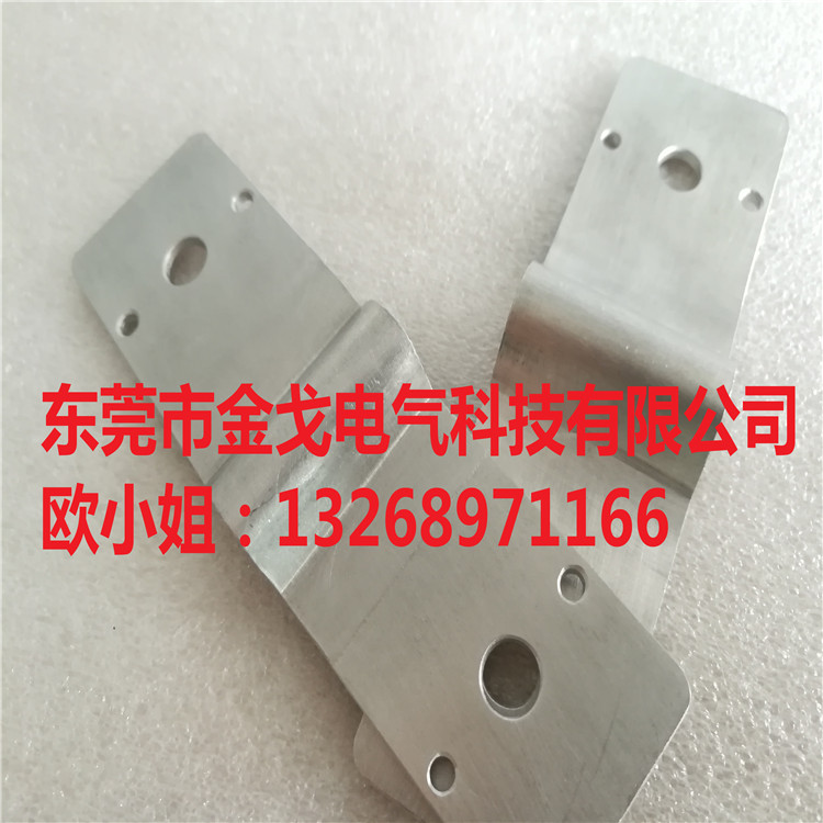 鋁箔軟連接采用優(yōu)質(zhì)0.05~0.3mm厚鋁箔,常規(guī)使用0.1厚鋁箔,上下表面貼0.1厚純鎳片,或0.1厚鍍鎳銅片,將疊片部分壓在一起,兩端或者打孔部分采用高分子擴(kuò)散焊,通過(guò)大電流加熱壓焊成型。中間套熱縮管保護(hù),大尺寸異形產(chǎn)品,中間采用浸塑工藝