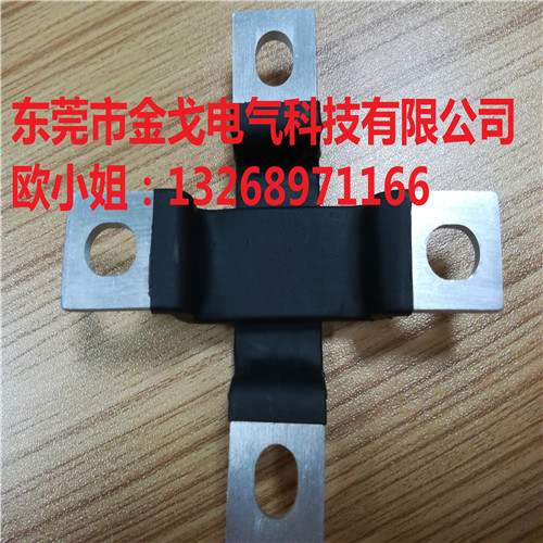 鋁箔軟連接采用優(yōu)質0.05~0.3mm厚鋁箔,常規(guī)使用0.1厚鋁箔,上下表面貼0.1厚純鎳片,或0.1厚鍍鎳銅片,將疊片部分壓在一起,兩端或者打孔部分采用高分子擴散焊,通過大電流加熱壓焊成型。中間套熱縮管保護,大尺寸異形產(chǎn)品,中間采用浸塑工藝。