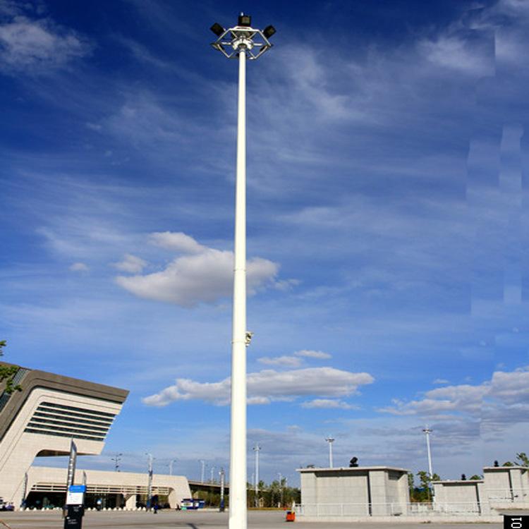 燈桿一般為8角或12角錐形桿體,由q235鋼材卷制而成,工藝較簡單。燈桿成型后,內外熱鍍鋅防腐處理,具有很強的防腐性能要求,鍍鋅處理后噴塑,做到表面處理光源。壽命不少于20年,桿體一般為棱錐形獨體結構,用鋼板卷制而成,高度為18—35米,多為兩到四節插接組成。
