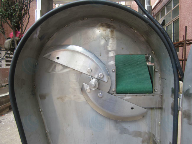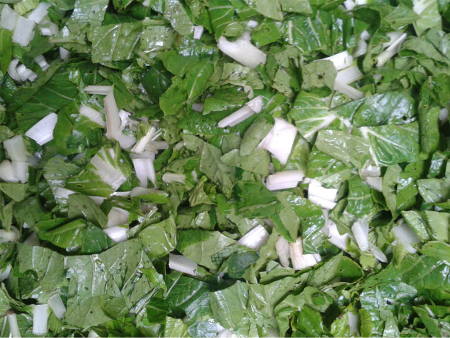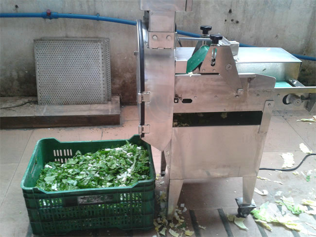 葉類蔬菜:由輸送帶輸送原料,轉刀速度和皮帶速度分別有變頻器獨立控制,切菜尺寸可以調節 1 - 60 mm。
