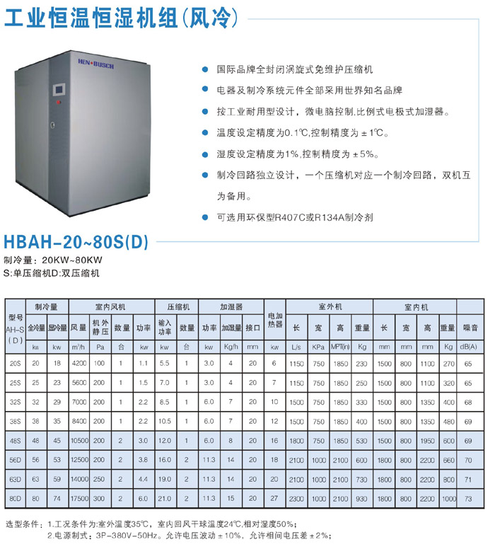 (1)機組壓縮機選用名牌半封閉螺桿式壓縮機及電控元件,配備換熱高效優質銅管制作的冷凝器及蒸發器;