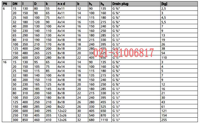 ksb凱士比boa-s法蘭過濾器的規格結構圖: