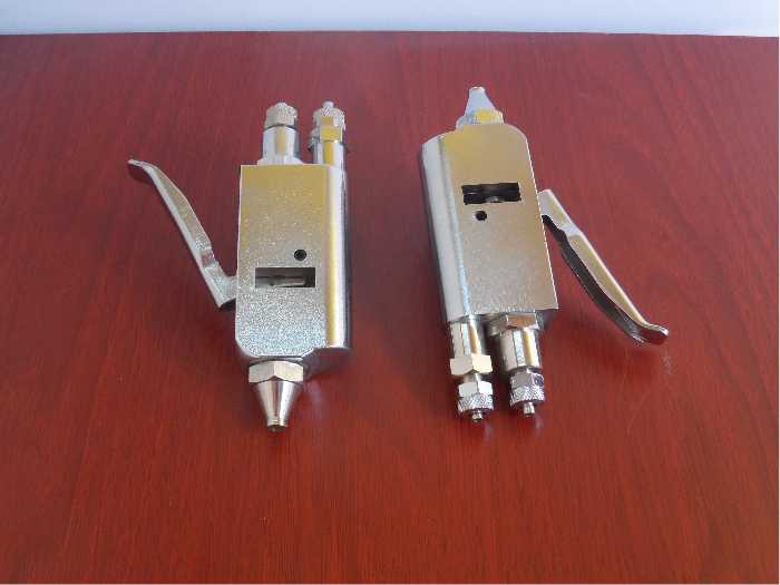 氣動噴霧去漬槍是利用壓縮空氣、去漬液及清水,采用真空去濕法,使服飾上部分頑固的污漬,在洗滌前或整理中進行強效去漬。因而被廣泛地應用于洗衣服務業,服裝制造業,紡織加工業及其他輕工業,具有去漬簡單快捷、除污去漬能力強、低損耗不傷衣物、有效節約成本等特點。
