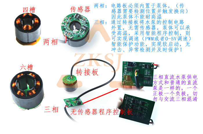 直流三相與交流三相完全不同,直流三相指的是無傳感器驅動,其供電方式與單相和兩相水泵一樣只有正負極兩根線。智能程序驅動,無傳感器,電路板可外置(外置之后泵體可以耐高溫)。可調速(pwm 、0~5v模擬信號、電位器調速)【選配】堵轉及反接保護,過壓過流保護,過溫保護軟啟動,啟動電流低,無沖擊,特別適用于太陽能板直接供電 |