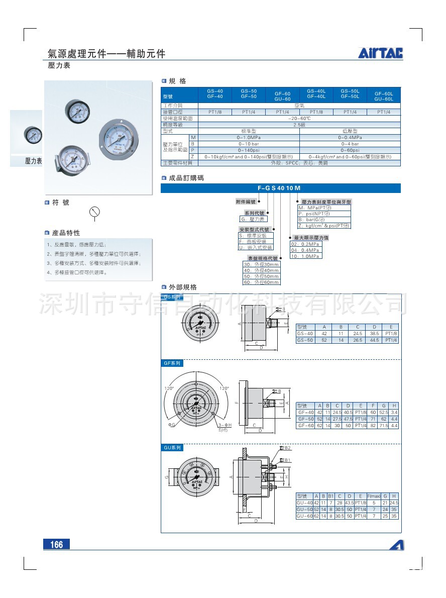 瀏覽:303次[供應]亞德客氣壓表 F-GS-40-10M標準型壓力表