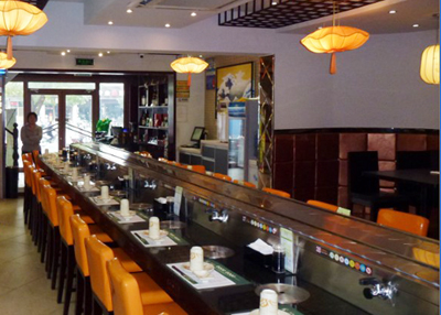 江蘇匯猶可機械制造有限公司,是華東境內第一家有回轉壽司設備加工資質的生產企業.壽司設備 回轉壽司設備 壽司設備價格輸送鏈板采用304不銹鋼制造,具有美觀、清潔、衛生,輸送方向,速度任意可調,是各種自助火鍋,自助早餐的新型時尚的設備。傳動部分采用臺灣產(城邦牌)2HP-1500W變頻減速電機,速比1:100,變頻器采用220V,2HP-1500W.SE系列,線速2-8米/分鐘 可調。壽司線,回轉壽司...