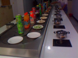 不需要設大廚房,整個配制、加工過程,都由顧客在餐桌上自己完成,節省空間是其一優點; 不需要大型灶臺和灶具,無需大廚,普通服務員無需培訓就能操作,簡單易操作是其優點之二; 回轉火鍋是一人一鍋,即可根據顧客喜愛選擇各色菜品又符合個人衛生習慣,綠色飲食回歸自然是其優點之三;獨特新穎的回轉火鍋設備工藝,配用現代高科技電磁爐具,沒有明火,不存在安 全隱患,沒有絲毫油煙產生,環保、衛生是其優點之四。 設備均擁有以下特點: 1、輸送鏈帶運行平穩 2、輸送鏈帶兩鏈片間高度差小 3、輸送導軌接駁位平整、無毛刺 4、設計合理,鏈帶經久耐用 5、鏈片墊條采用特殊材質制造,具有耐磨、無噪音等特點。