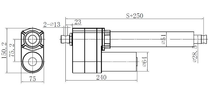 4.最短安 裝距(內管完全收回來前后兩孔中心距離):l=s+250mm;內管完全伸出去前后兩孔中心距離=2*s(行程)+250mm