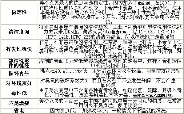 特別是對金屬有_很強的清潔功效,工業上判斷溶_劑 _型清洗劑 _清洗能力主要采用kb值,美沙克靈的kb值為136,比111-tce,cfc-113,