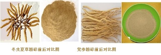 ●植物、中藥細胞破壁加工:靈芝、 蟲草、 鹿茸、羚羊角、蜈蚣、脫水蔬菜、果品、中草藥細胞破壁粉 碎生產功能性微粉 。