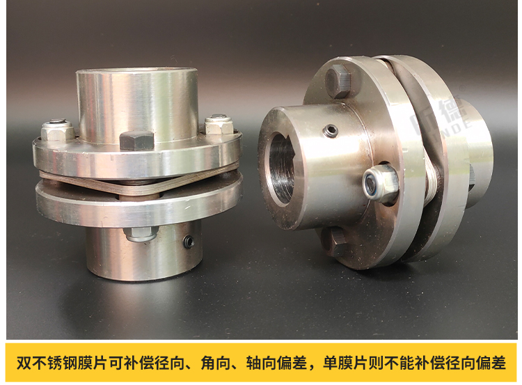 雙不銹鋼膜片可補償徑向、角向、軸向偏差,單膜片則不能補償徑向偏差
