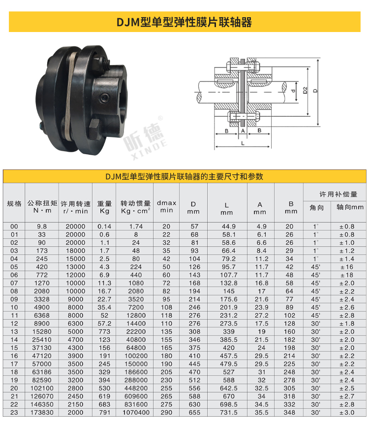 上海昕德專業提供djm單節膜片聯軸器,sjm雙節膜片聯軸器,zjm脹套式膜片聯軸器,具有以下特點;