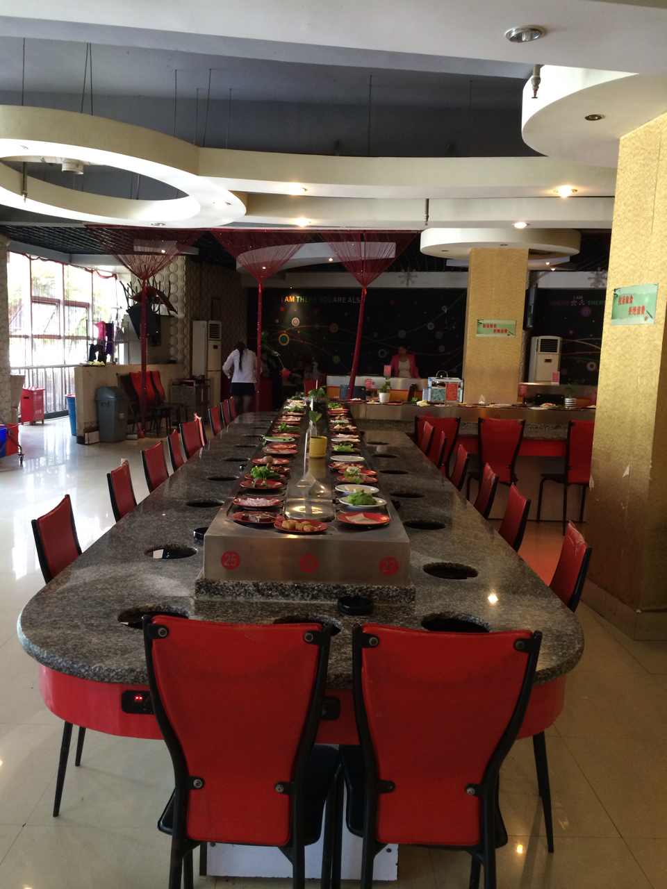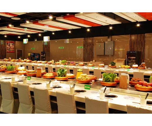 我公司可根據回轉火鍋店的店面大小為客戶專門設計符合店面要求的回轉火鍋設備,在最大程度上滿足客戶的需求