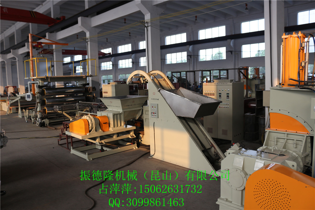 此機組是針對片材設計而成,它比起傳統的生產流程減少了開練真真做到低投入,低噪音、低能耗、高效能、高回報、用工少、質量穩定生產連續的理念;螺桿采用特殊混料功能及高塑化能力設計。