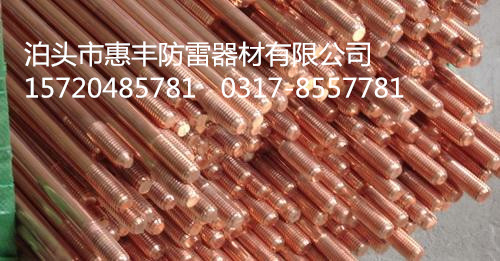 銅包鋼接地棒內芯為優質q235低碳鋼芯,此鋼芯強度恨高,導磁性良好,有利于電磁場的傳輸與擴散,表層金屬為99.9%無氧銅;銅層厚度分別為:0.127mm0.25mm0.33mm0.50mm1.0mm等多種規格;銅層結協力實驗繼續體溫300℃達1小時以上后急冷,銅層不剝落;銅包鋼接地棒耐侵蝕性測試實驗將該接地棒放入濃度10%硝酸 液中浸泡90小時以上。