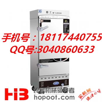 蒸飯柜,又稱蒸飯柜、蒸飯機或蒸飯箱。是指利用電、燃氣發(fā)熱,蒸煮米飯的大型廚房烘烤設(shè)備。內(nèi)部采用不銹鋼蒸盤(不銹鋼方盤)作為容器,為了方便移動,在設(shè)備下方安 裝有萬向輪,故外形似車。。蒸飯柜除了用來蒸米飯、饅頭、包子以外,還可蒸豬肉、雞鴨等肉食,還有專門用來蒸海鮮的海鮮蒸柜,也可以燉湯。