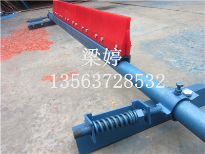 p列第二道聚氨酯清掃器安 裝在頭部滾筒下部回程輸送帶平直工作面處。與h一道清掃器配合使用,彈簧的壓力能自動補償因刮刀與皮帶磨損產生的間隙,保持刮刀與輸送帶緊密接觸,刮除輸送帶粘料效果佳,且不損傷皮帶。