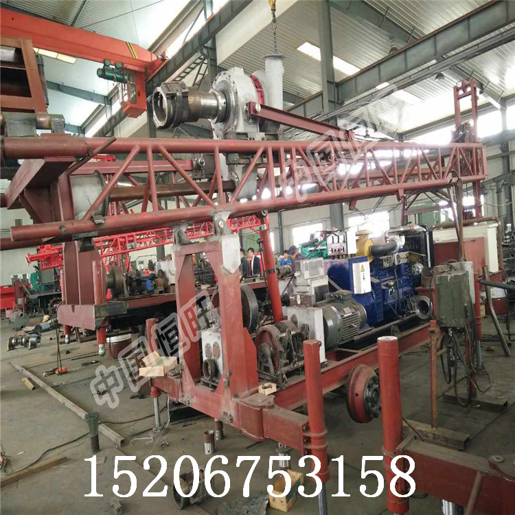 ①鉆機為動力頭機型,給進行程長,加接鉆桿方便,無需加接主動鉆桿。液壓起落鉆塔,操作方便,省時省力。