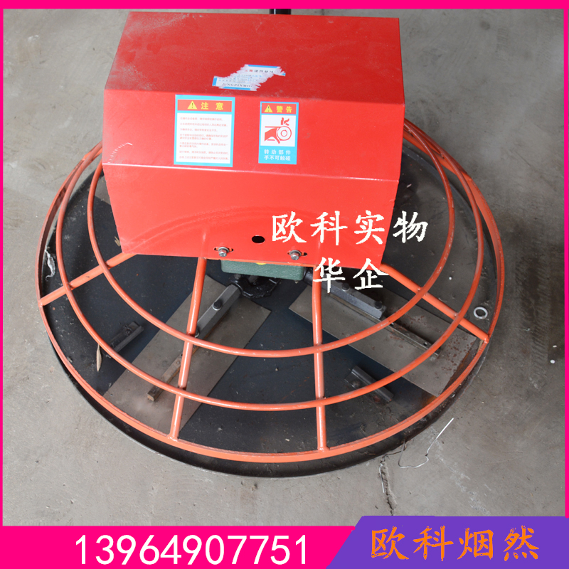 地面抹光機又叫做水泥收光機,它的主要機構是一個電動機驅動的抹刀轉子,在轉子中部的十字架底面裝有2~4片抹刀。抹刀傾斜方向與轉子旋轉方向一致,由電動機帶動三角皮帶使抹刀轉子旋轉。