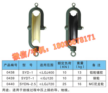 產品名稱滑輪大小額定負荷(kn)備注上揚下壓滑輪80*505滑輪可選鋁輪、尼龍輪上揚下壓滑輪120*6010滑輪可選鋁輪、尼龍輪用途:用于光纜施式中可能產生上揚的場合。