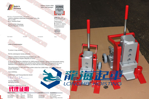德國爪式千斤頂為德國jung品牌產品,煙臺開發區龍海起重工具有限公司為中國代理商。德國爪式千斤頂采用履滑設計,在起升過程中降低摩擦,使承載力達到大。