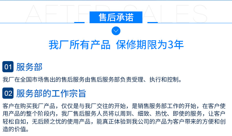 我廠所有產(chǎn)品,保修期限均為三年。