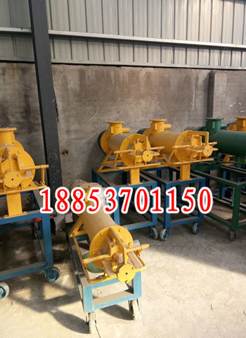 其工作過程如下:無堵塞泵將未經發酵的豬糞水泵入機體,在振動電機的作用下加速落料,此時經動力傳動,擠壓絞龍將糞水逐 漸推向機體前方,同時不斷提高前緣的壓力, 迫使物料中的水分在邊壓帶 濾的作用下擠出網篩,流出排水管。擠壓機的工作是連續的, 其物料不斷泵入機體,前緣的壓力不斷增大,當大到一定程度時,就將卸料口頂開, 擠出擠壓口,達到擠壓出料的目的。