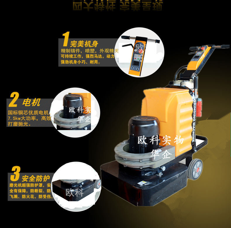 地坪拋光機產品技術參數型號ok-900工作寬度480*480mm功率7.5kw電壓380v轉速1500轉/分磨盤280m*4水箱容積35l重量210kg 拋光機保養常識及注意事項