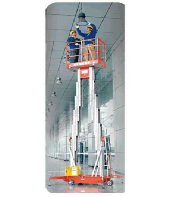 雙桅桿鋁合金升降機系列其價格比吊臂式升降臺要便宜50%,除了價格便宜外,雙人升降臺系列在狹窄通道的靈活性,使其能完成許多吊臂式升降臺不能完成的工作。可單人或雙人操作,寬闊的平臺提供足夠的空間,便于操作人員作業,擺放工具。具有最剛硬的升降桅柱系統,其特征是:高強度的鋁合金桅桿,互鎖系統,可伸縮柱及安 全系數大于10:1的高強度的起重鏈,并設有鋼絲安 全保護系統可用來加強力度及可靠性能,維修方便,其焊接式高強度的鋼底座適合于惡劣的工作環境。雙桅桿鋁合金升降平臺是本公司獨有的產品,由電液傳動,安 全可靠,最高工作高度可達16米,最大載重250kg左右,需要進入普通載客電梯設計的新型產品,具有體積緊湊,安 全堅固,使用方便的特性。種類:分別有sjyl-9ii、10ii、11ii、12ii、13ii、14ii,16ii,最高工作高度為18米。采用高質鋁合金材料制,設計輕巧,堅固安 全,寬闊平臺能負載共兩人及工具工作,更有效及安 全。優點 : 1、最高工作度為18米