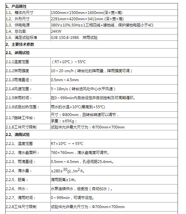 高風速淋雨試驗箱,本產(chǎn)品適用于考核電子電工產(chǎn)品、外殼和密封件在淋雨環(huán)境下能否保證設備和元件良好性能的試驗